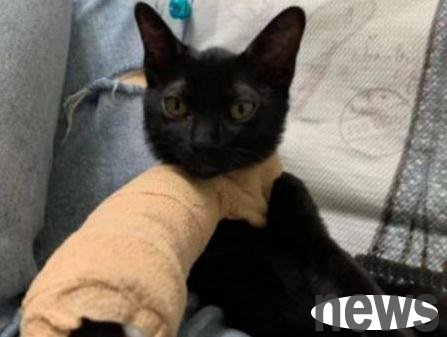 After bandaging, although the poop scraper felt very sorry for the cat, he also wanted to laugh very much, because the image of the cat at this time is particularly easy to make people laugh.