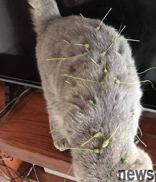 The cat ran out to play, but when it came back it turned into a "hedgehog". The pet owner couldn't help but burst out laughing.