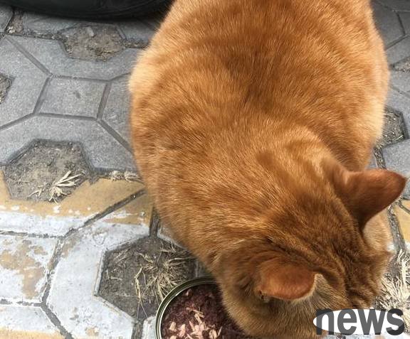 From that day on, this orange cat arrived on time for meals, once in the morning and once in the evening. He was never late, and he was not picky about food. Other stray cats were full after eating cat food, but he couldn't. After finishing the cat food, he had to get another can.