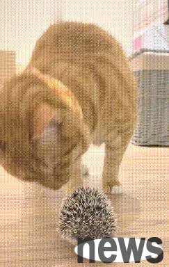 The cat below is even more funny. It met a hedgehog and was disappointed!