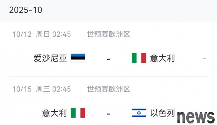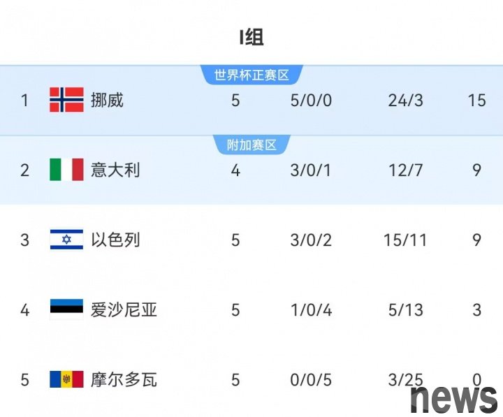 Italy's current World Cup qualifiers qualifying situation is not optimistic: they are 6 points behind Norway, ranked No. 1 in the group. On October 12, they will challenge Estonia away; on October 15, they will face Israel at home.