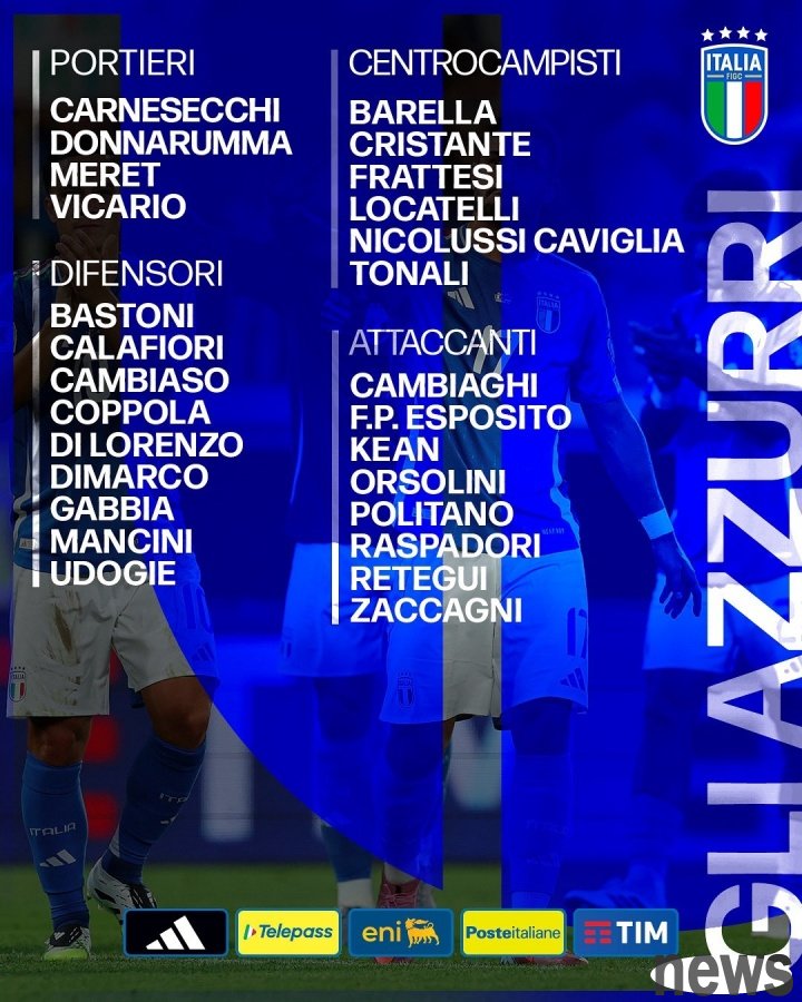 The Italian team officially announced the roster for the international match day in October, with Donnarumma leading the way, Tonali, Calafiori and Retgi being selected, and Chiesa Jr. absent. This group of players will play in two World Cup qualifiers in October with Italy.