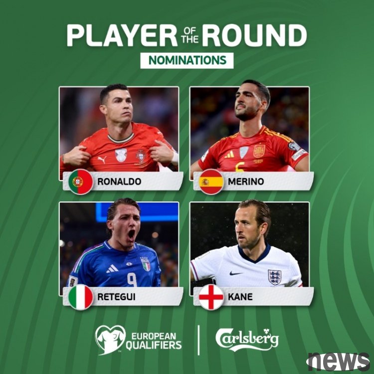 UEFA announced the candidate list for the best player in this round of European World Cup preliminaries. Cristiano Ronaldo, Merino, Retegui and Kane are on the list.
