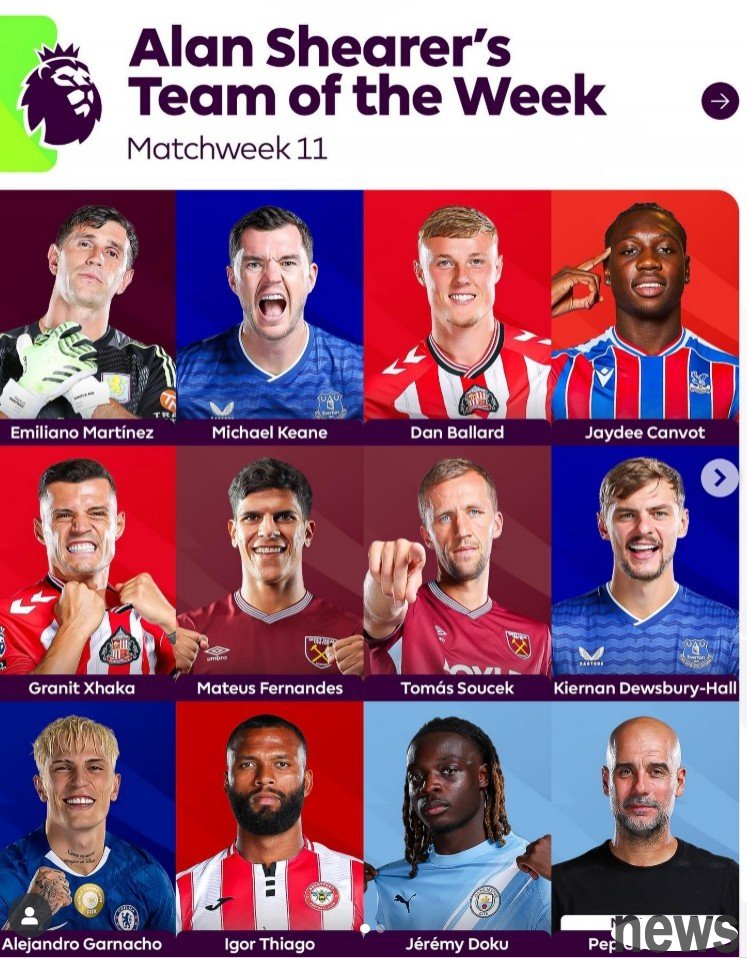 After this round of Premier League, Alan Shearer also selected the best team of this round of Premier League. The details are as follows: