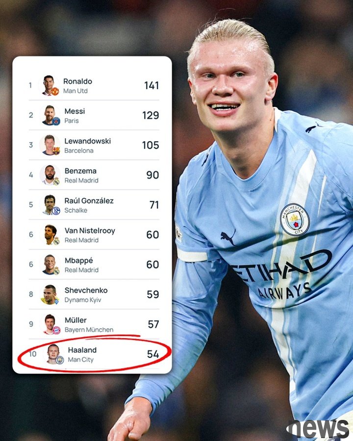 Ten years later, the 35-year-old Haaland is about to top the Champions League's historical scorer list, and the 50-year-old Ronaldo returns to Europe to defend the record!