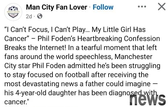 It is reported that the first rumor appeared on Facebook, falsely claiming that Foden's eldest son, 6-year-old Rooney, had passed away. A rumor maker with the online name "Manchester City Fan Lover" also posted a post claiming that Foden's 4-year-old daughter has cancer.