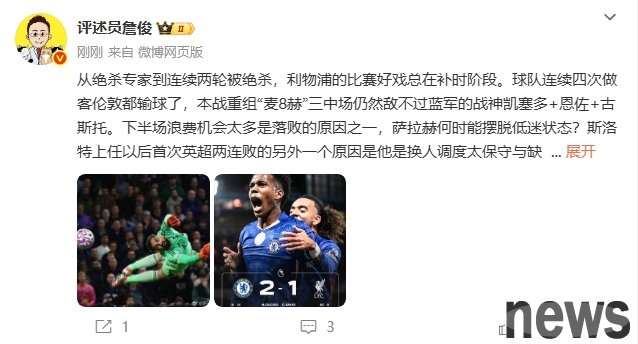 From the finale to the finale of the expert to the finale of two consecutive rounds, Liverpool's good game is always in stoppage time. The team lost four consecutive games to London. The three midfielders of "Mc8H" in this game still couldn't beat the Blues' god of war Kesedo + Enzo + Gusto. Too many opportunities were wasted in the second half. One of the reasons for the defeat. When will Salah get rid of his sluggish state?