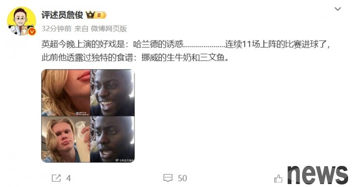 Zhan Jun: The highlight of the Premier League tonight is: Haaland's temptation... He scored in 11 consecutive games. He had previously revealed a unique recipe: Norwegian raw milk and salmon.